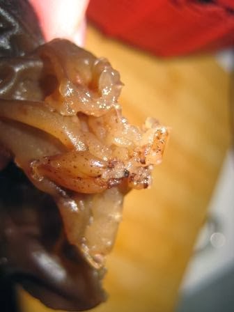 的木耳發好大嚿, 中間仲有的白白地色比較硬, 我用刀切去, 再將木耳切到適當大細.